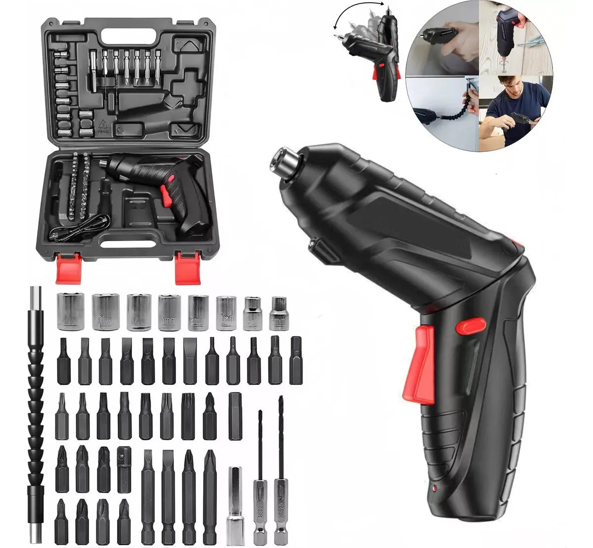 Ideal para montar muebles, ajustar bisagras, colgar estantes, bricolaje y reparaciones domésticas.