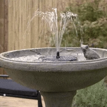 La fuente solo necesita luz solar directa y agua para funcionar. No requiere baterías ni cables, ya que su panel solar alimenta el sistema directamente.